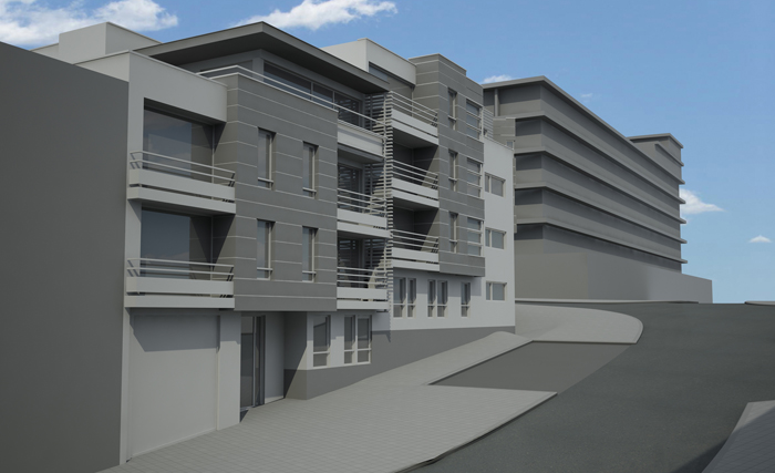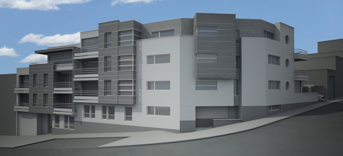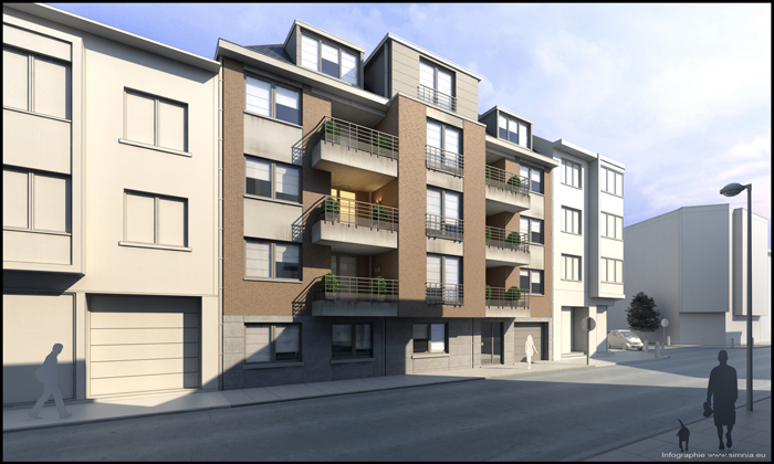 Sur les hauteurs de Cointes, surplombant Liège, bel immeuble de coin imaginé par le cabinet 'architecture ODM. 22 unités. En face d'un très beau parc. A 2 minutes à pied d'un Delhaize et de commerces de proximité et de la gare des GUILLEMINS.
